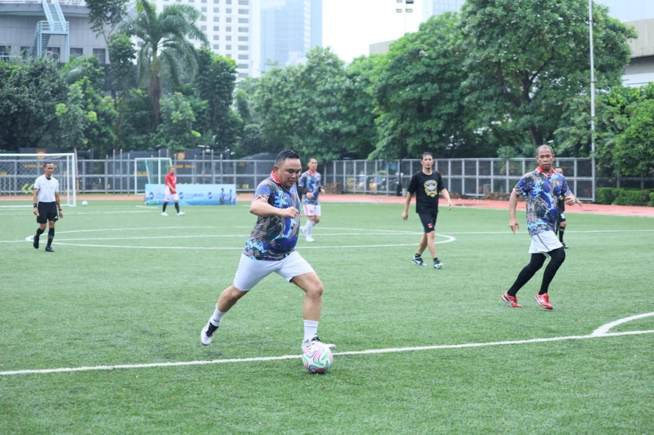Usai olahraga bersama, pertandingan minisoccer antara PJU Polda Metro Jaya dan FWP PMJ berlangsung dalam suasana akrab dan penuh sportivitas. Interaksi di lapangan mencerminkan hubungan yang cair dan saling menghargai antara Polri dan insan pers.