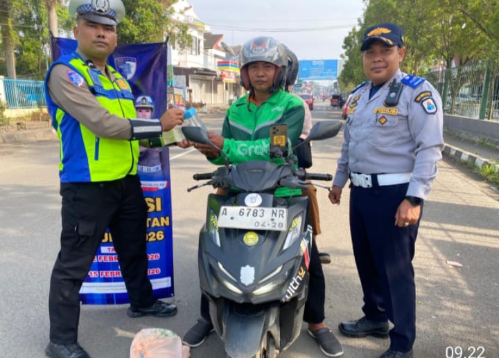 Rakyatmerdekanews.com.id.Lebak – Memasuki hari ke-9 pelaksanaan Operasi Keselamatan Maung 2026, Satuan Lalu Lintas Polres Lebak Polda Banten memberikan apresiasi kepada para pengendara yang tertib berlalu lintas dengan membagikan tumbler.