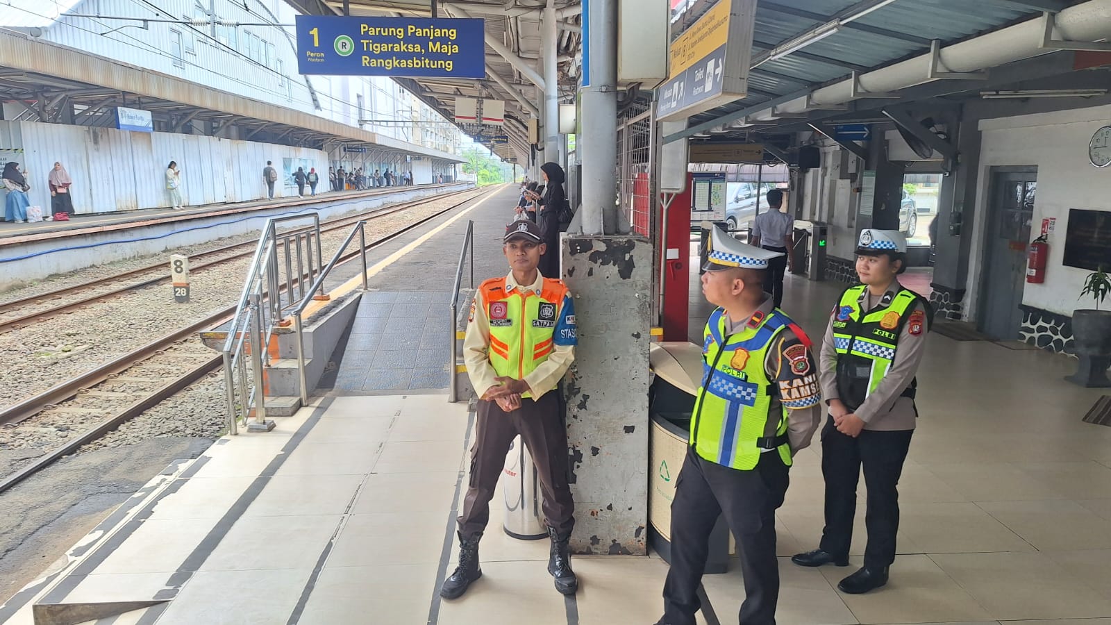 Selain melakukan pemantauan situasi, petugas juga berkoordinasi dengan pihak pengelola stasiun dan petugas keamanan setempat guna memastikan seluruh prosedur pengamanan berjalan optimal. Personel turut memberikan imbauan kamtibmas secara humanis kepada penumpang agar selalu waspada terhadap barang bawaan dan mematuhi aturan keselamatan selama berada di area stasiun.
