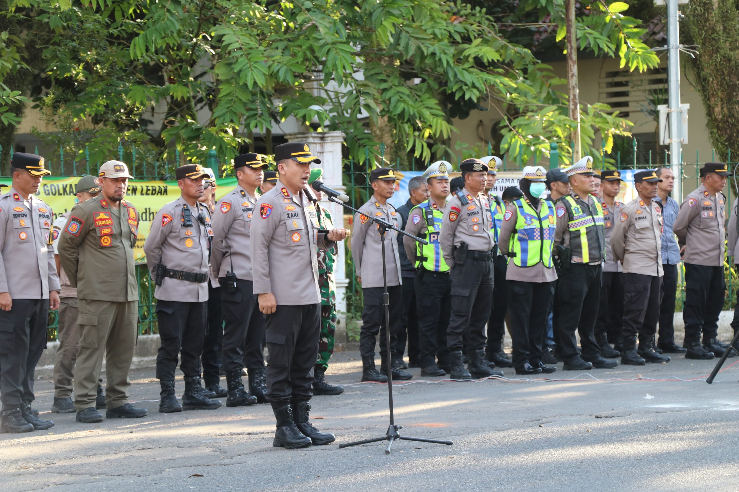 Apel tersebut dipimpin langsung oleh Kapolres Lebak AKBP Herfio Zaki, S.I.K., M.H., didampingi Wakapolres Lebak Kompol Eddy Prastyo H, SE, MM, para Pejabat Utama Polres Lebak, serta diikuti oleh personel gabungan dari Polres Lebak, Kodim 0603 Lebak, Satpol PP Lebak, Dishub Lebak, Damkar Lebak, Pramuka, dan PKS.