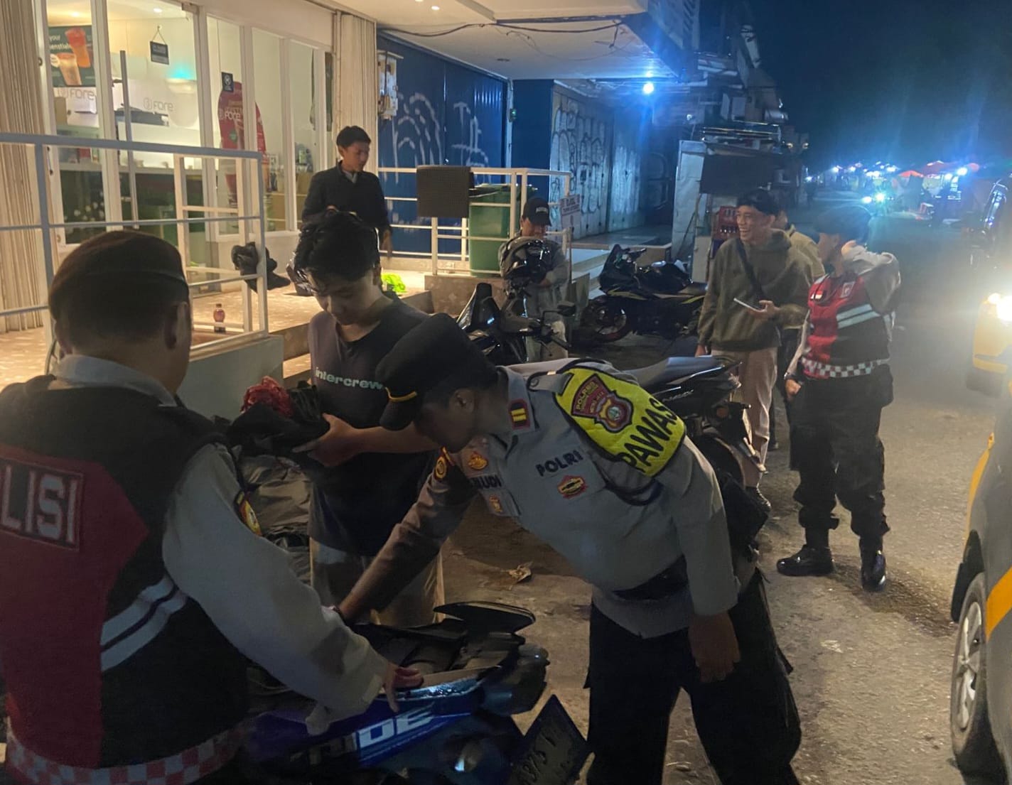 Selain patroli mobile, personel juga melakukan strong point di lokasi-lokasi rawan seperti Pasar Kita Pamulang, Gg. H. Betong Kedaung, dan Jl. Oscar Kelurahan Bambu Apus, serta melakukan pemeriksaan terhadap remaja dan pengendara sepeda motor yang dicurigai guna mencegah tawuran dan balap liar.