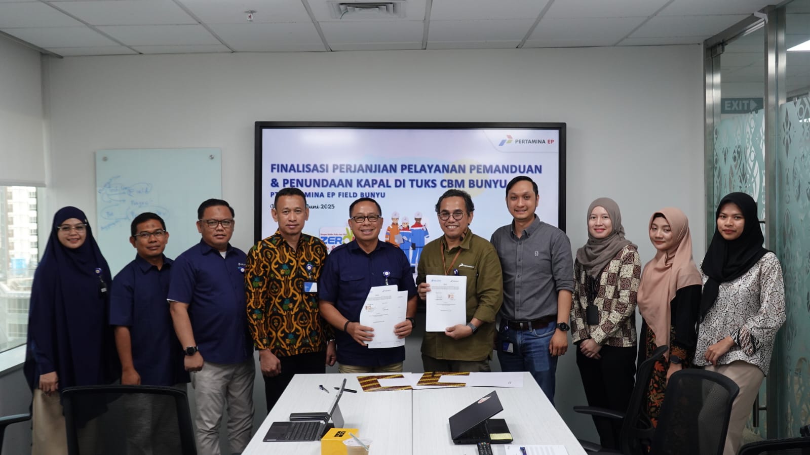 Penandatanganan perjanjian kerja sama yang berlangsung di Graha Elnusa, Jakarta, pada Kamis (12/6/2025) ini dilakukan oleh Executive Director 4 Pelindo Regional 4, Abdul Azis yang didampingi General Manager Pelindo Regional 4 Tarakan, Amrullah, bersama Senior Manager Bunyu Field PT Pertamina EP, Despredi Akbar.