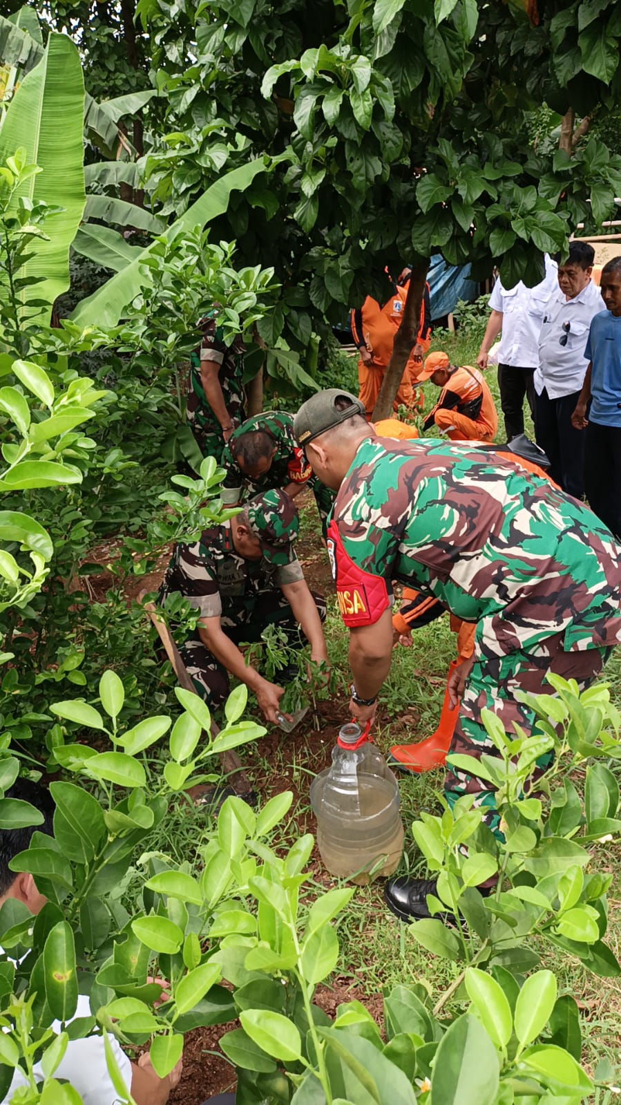 “Jadi Sebanyak 20 pohon, Jajaran Koramil 05 KJ Kodim 0503 JB sudah ditanam bersama unsur Tiga Pilar dan masyarakat,” terang Danramil 05/KJ Mayor Infanteri Irwan Triyono.