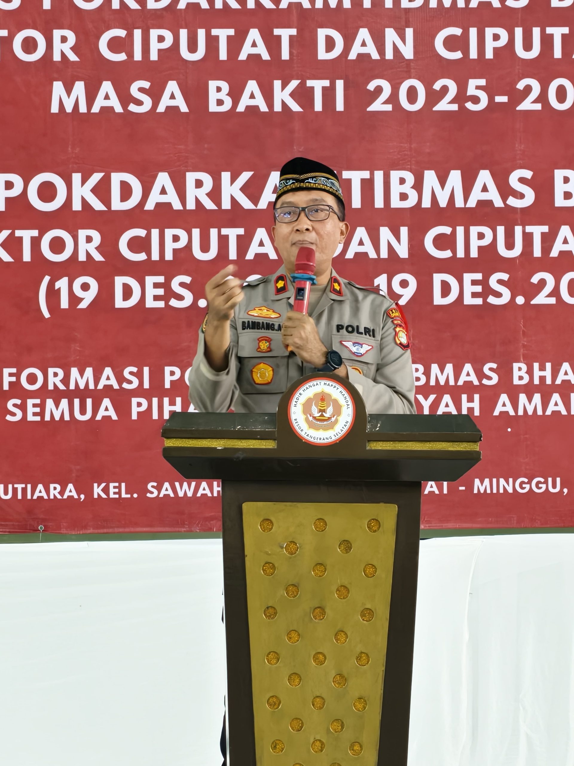 Rakyatmerdekanews.co.id, Tangsel — Pengukuhan Pengurus POKDAR Kamtibmas Bhayangkara Sektor Ciputat–Ciputat Timur periode 2025–2029 yang dirangkaikan dengan syukuran Hari Ulang Tahun (HUT) POKDAR Kamtibmas Bhayangkara ke-16 berlangsung khidmat dan penuh kebersamaan, Minggu malam (21/12/2025).