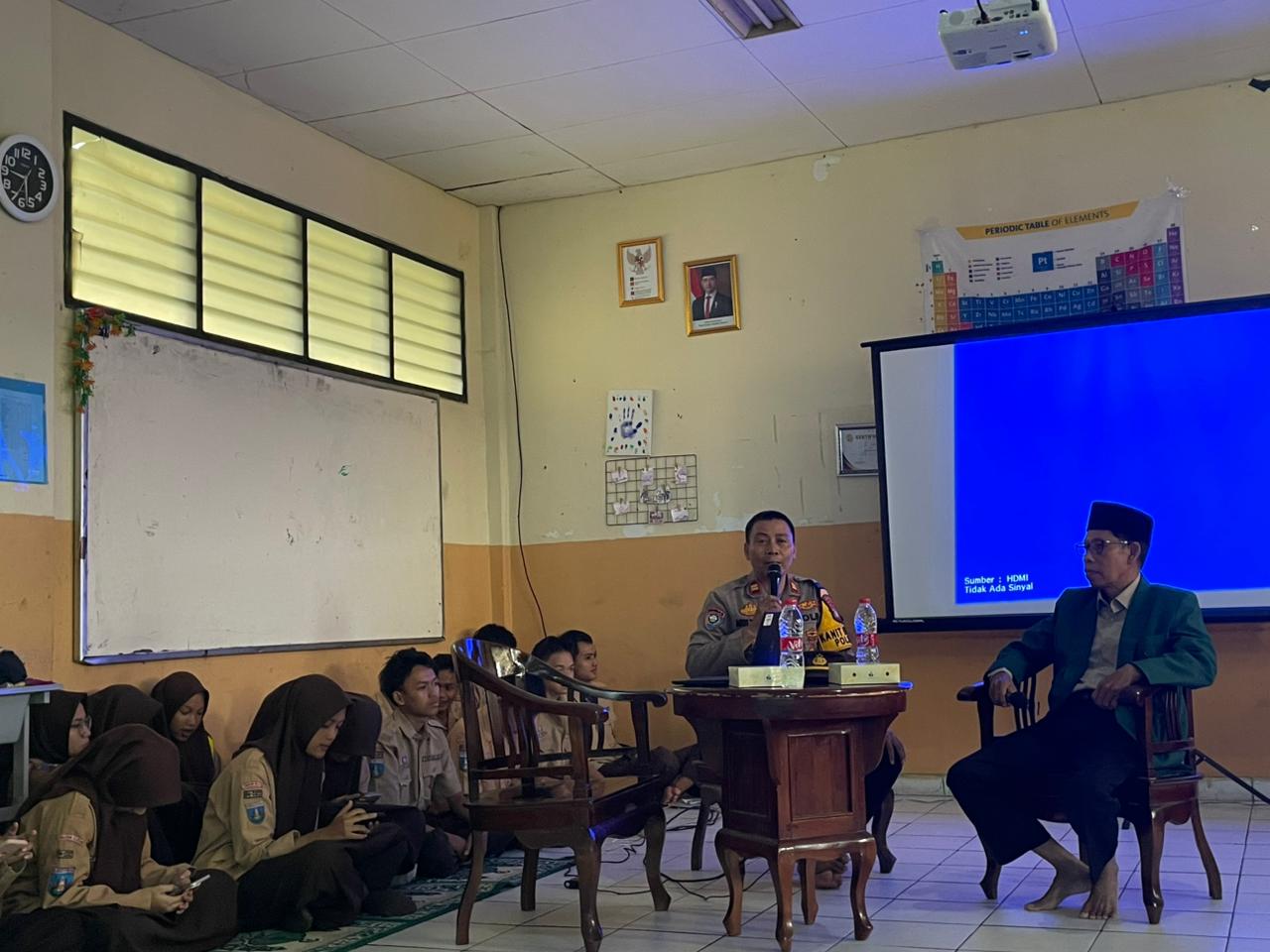Kegiatan berlangsung di Sekolah MA Khazanah Kebajikan yang berlokasi di Jalan Talas 1, Pondok Cabe Ilir, Kecamatan Pamulang, Kota Tangerang Selatan. Hadir dalam kegiatan tersebut Kanit Binmas Polsek Pamulang IPTU Mulyono, S.H., M.H., bersama Niken selaku staf Binmas. Kegiatan diikuti oleh siswa dan siswi MA Khazanah Kebajikan dengan suasana yang tertib dan penuh antusias.