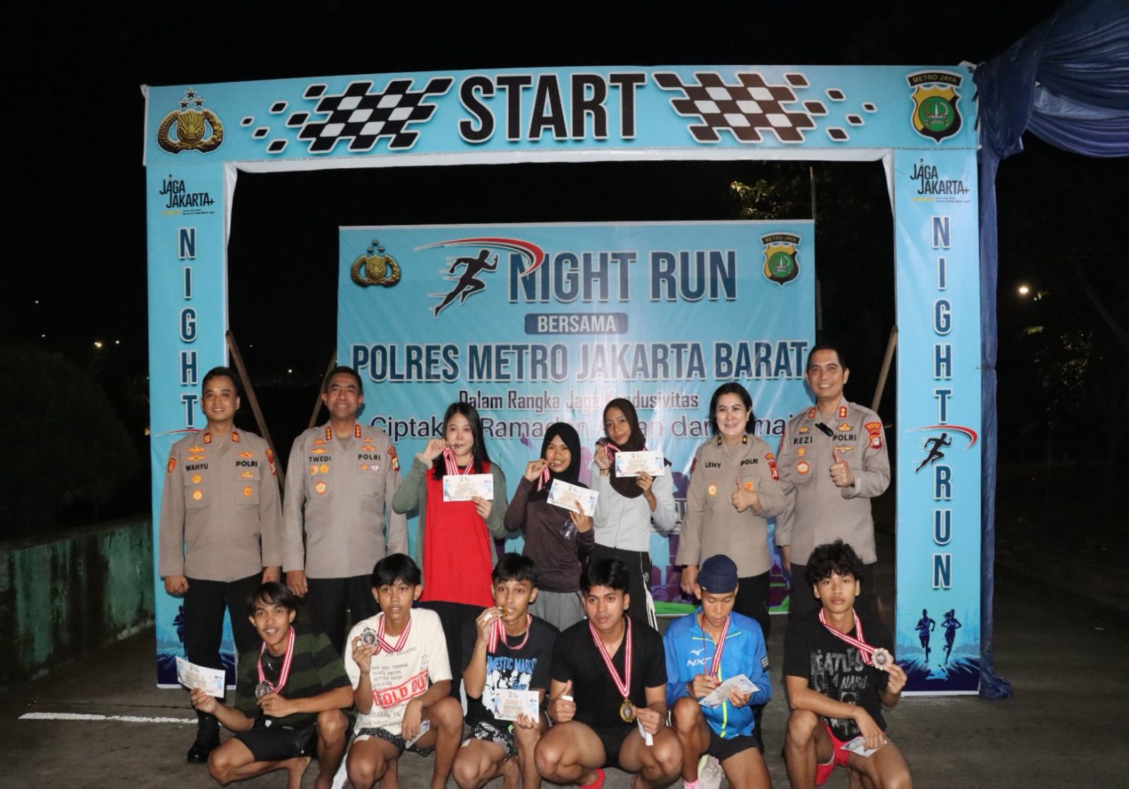 Ratusan remaja berkumpul dengan penuh semangat mengikuti lomba balap lari malam (Night Run) yang digelar oleh Polres Metro Jakarta Barat.