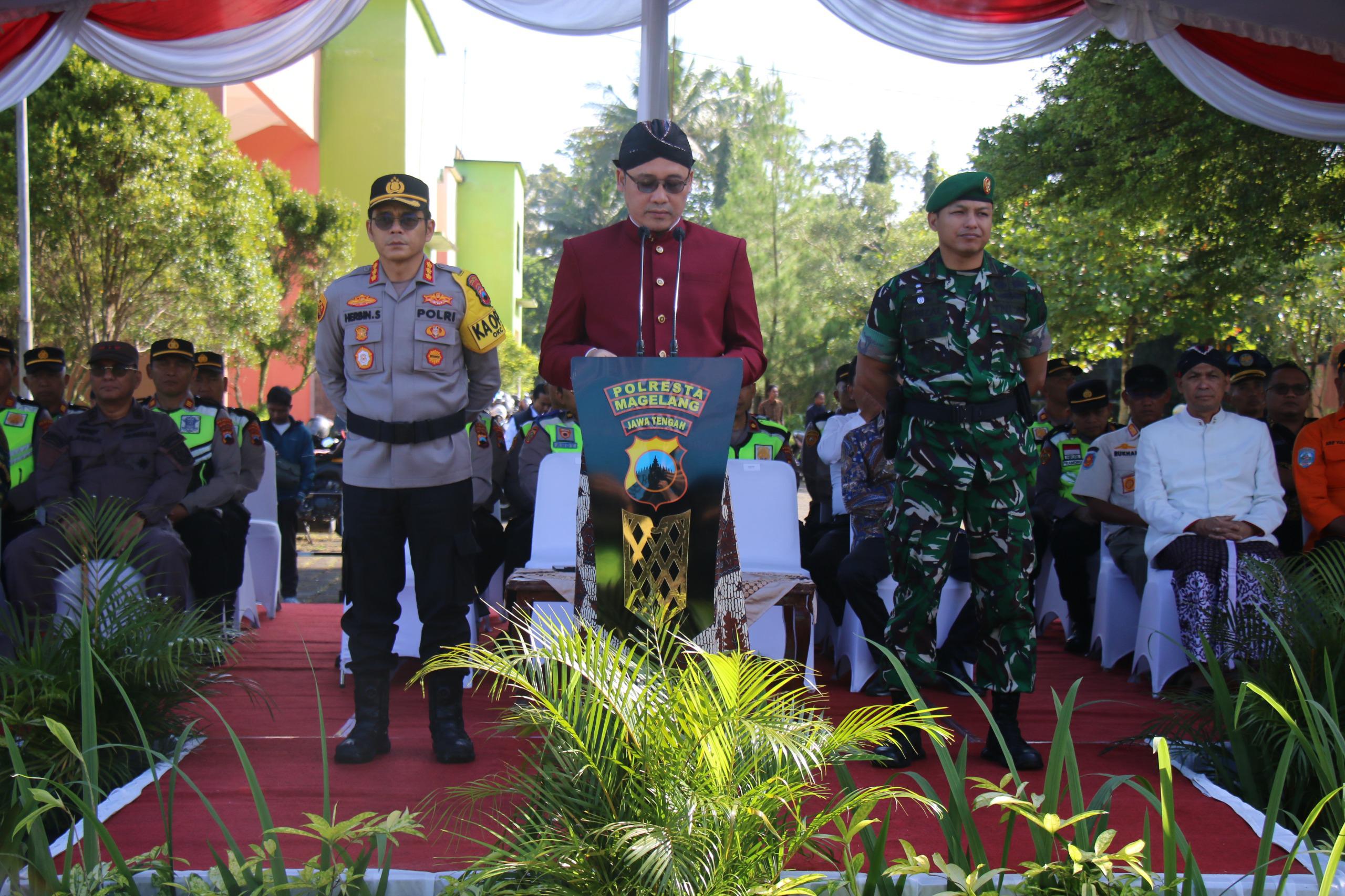 Apel dipimpin langsung oleh Bupati Magelang, Grengseng Pamuji, S.Pt, serta dihadiri oleh Kapolresta Magelang Kombes Pol Herbin Sianipar, SIK., SH, Dandim 0705/Magelang Letkol Inf. Afrizal Rakhman, SIP., MIP, unsur Forkopimda Kabupaten Magelang, pejabat utama Polresta Magelang, para Kapolsek jajaran, serta perwakilan instansi terkait.