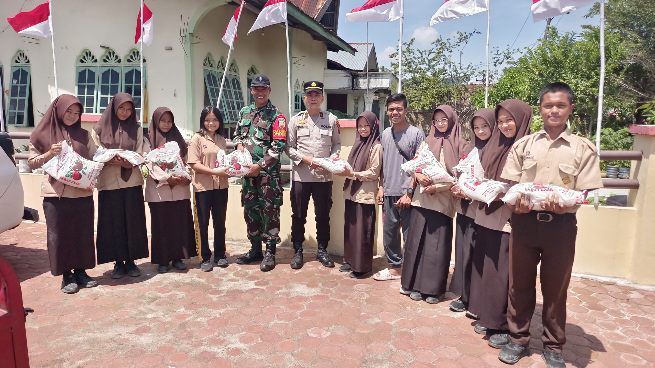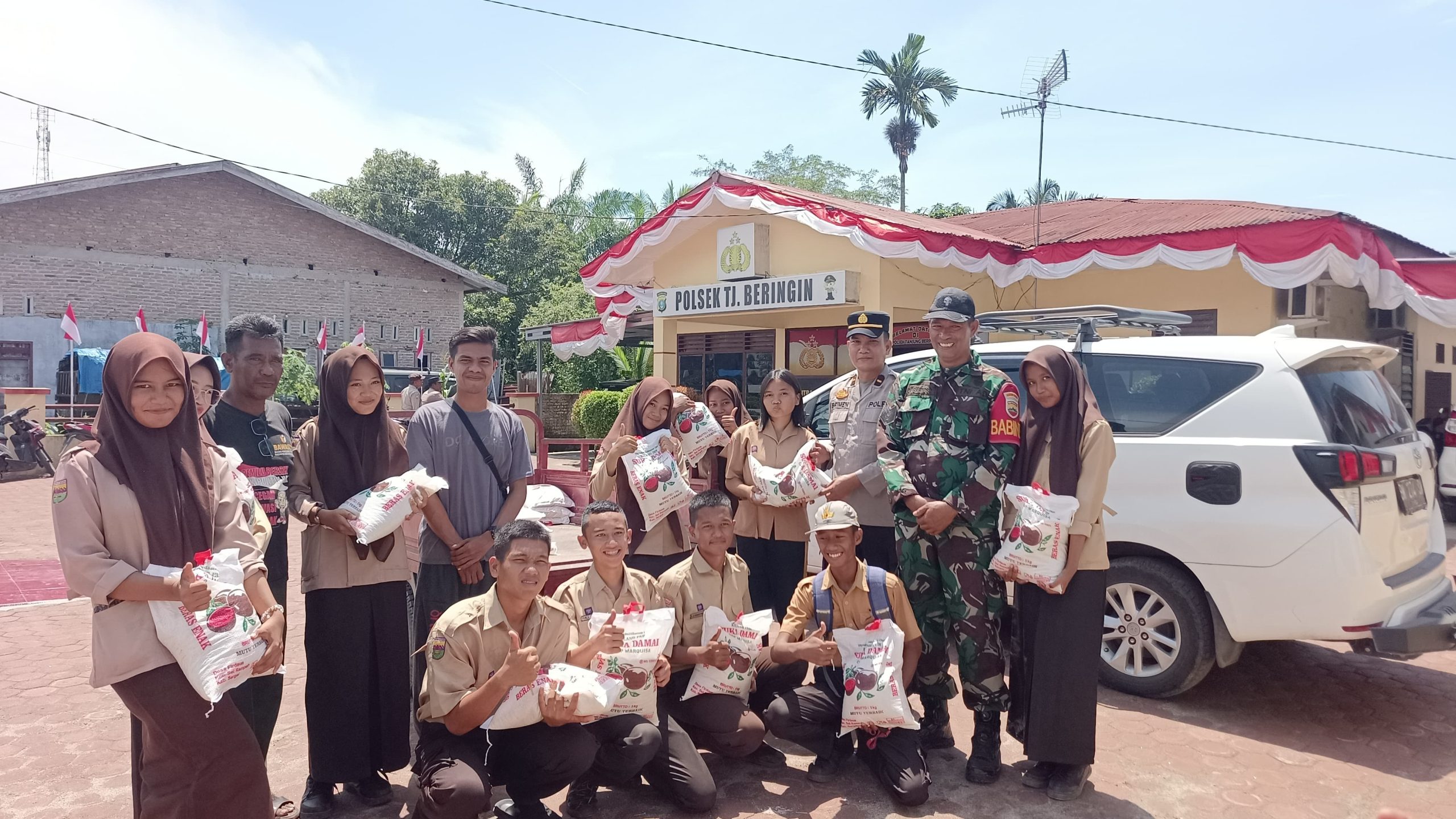 POLRI-TNI Salurkan Bantuan Beras 34 Karung Untuk Anggota Paskibra Tanjung Beringin