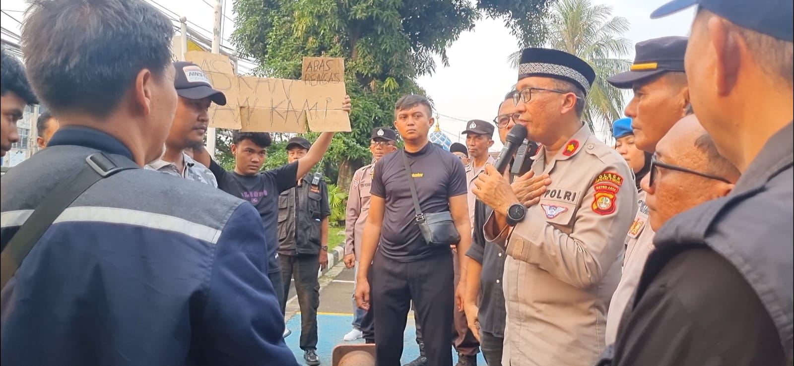 Aksi yang awalnya berlangsung dengan penyampaian aspirasi, perlahan berubah menjadi tegang. Massa menuntut agar anggota keluarga mereka segera dibebaskan. Petugas Polsek Ciputat Timur dengan sigap melakukan pendekatan persuasif dan humanis dengan mengedepankan dialog.