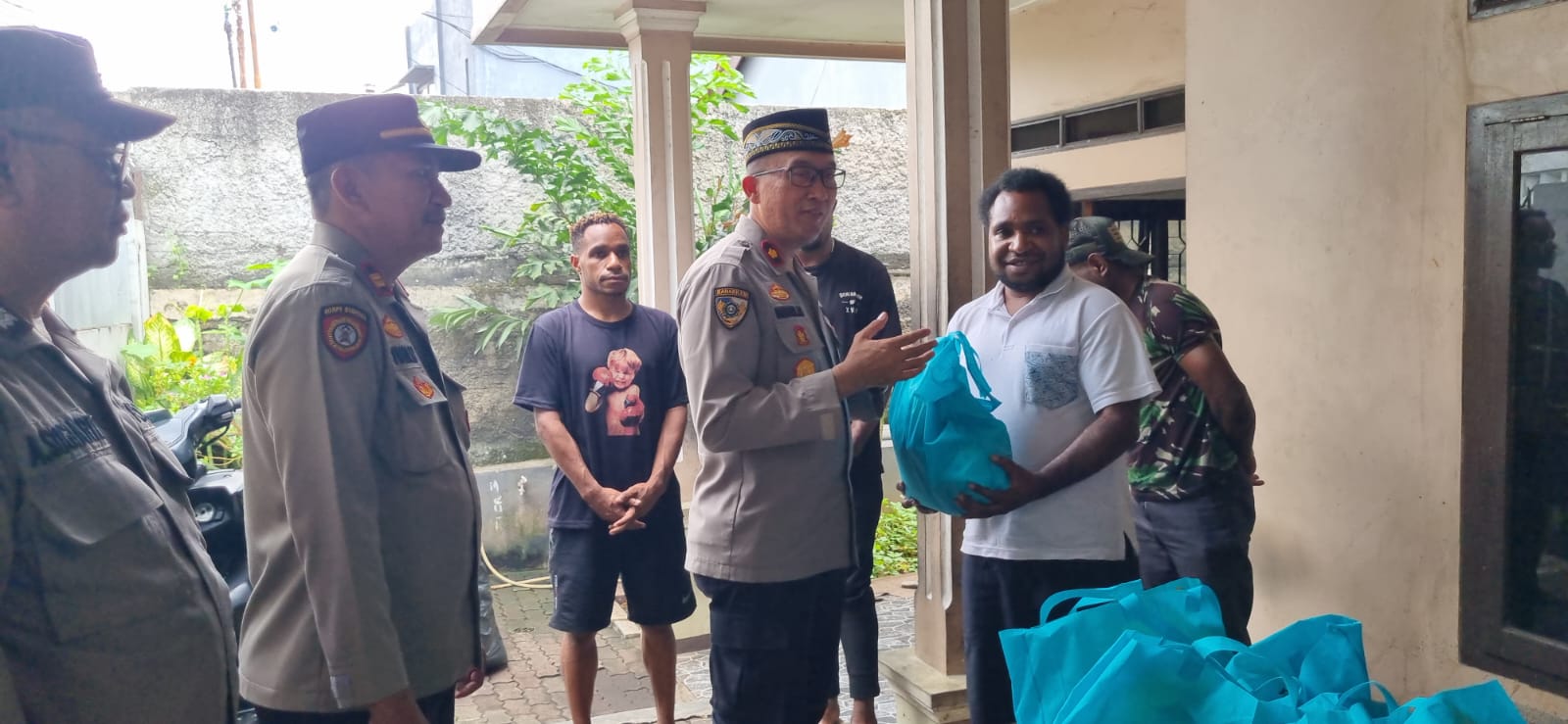 Dalam kegiatan tersebut, jajaran Polsek Ciputat Timur melakukan kunjungan sekaligus menyerahkan bantuan sembako kepada para mahasiswa Papua yang tinggal di asrama Sandratex dan tidak pulang ke kampung halaman saat Lebaran.