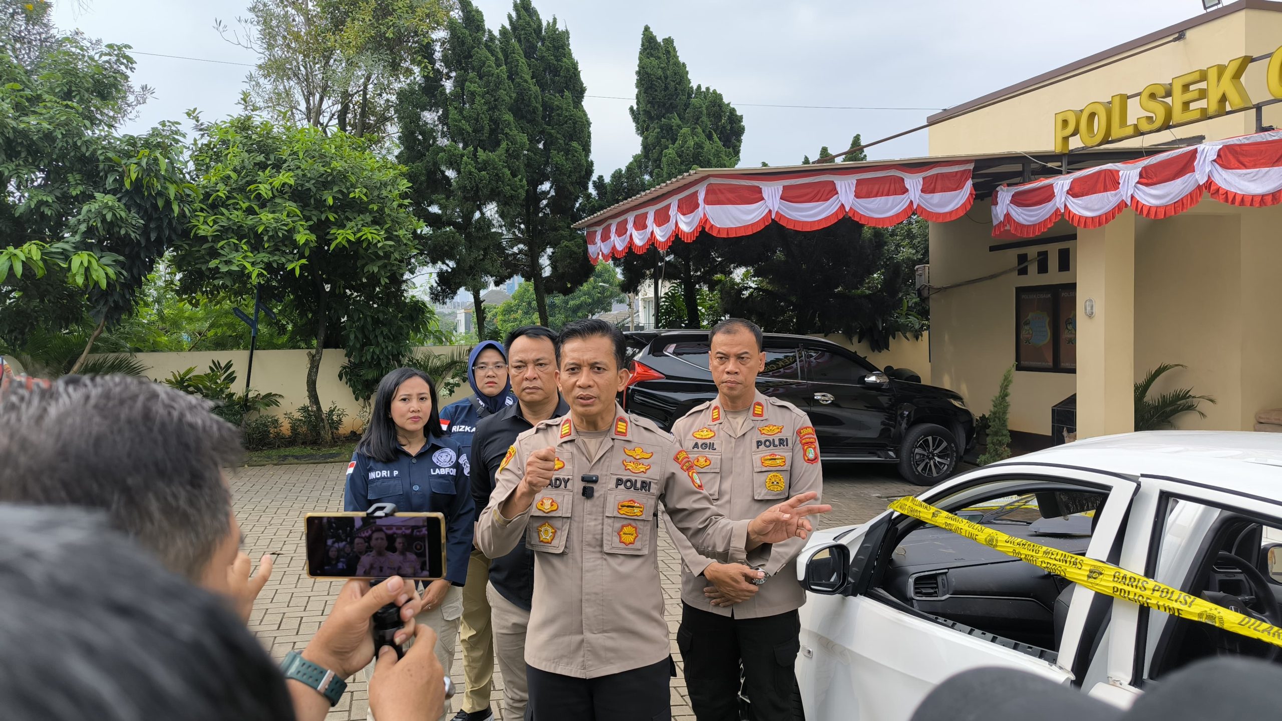 Rakyatmerdekanews.co.id, Tangerang – Polsek Cisauk, Polres Tangerang Selatan, menggelar konferensi pers terkait insiden ledakan mobil jenis hatchback yang terjadi pada 15 Juli 2025 di Jl. Raya Serpong–Rumpin, tepatnya dekat restoran cepat saji Desa Suradita, Kecamatan Cisauk, Kabupaten Tangerang.