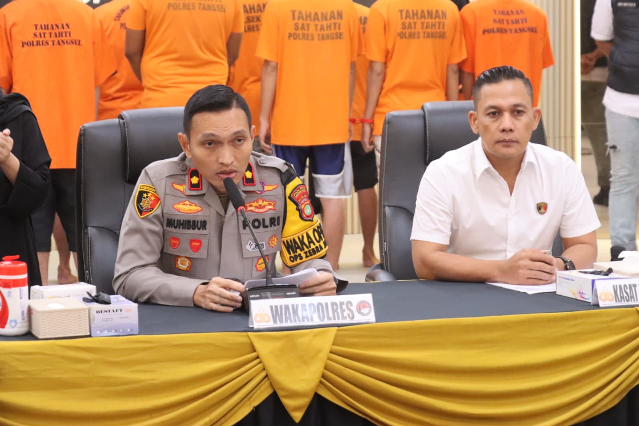 Dalam konferensi pers, Wakapolres Tangerang Selatan Kompol Muhibbur RA., S.H., M.H., CPHR., CBA., menjelaskan bahwa total barang bukti yang berhasil diamankan mencapai 30.906 butir obat daftar G, terdiri dari Tramadol, Hexymer, Trihexyphenidyl, dan berbagai jenis obat keras lainnya.