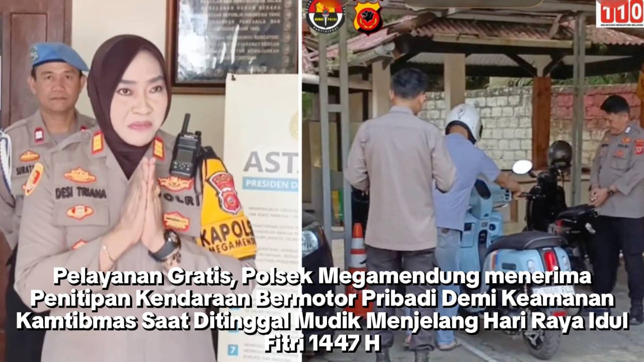 Rakyamerdekanews.co.id, Kabupaten Bogor – Untuk mencegah adanya gangguan kamtibmas di wilayah hukum Polsek Megamendung Polres Bogor Polda Jawa Barat dimana Polsek Megamendung Melayani Masyarakat yang menitipkan Kendaraan pribadinya, saat ditinggal mudik menjelang hari raya Idul fitri 1447 H ke kampung halaman, pelayanan secara gratis. Rabu (16/3/2026)