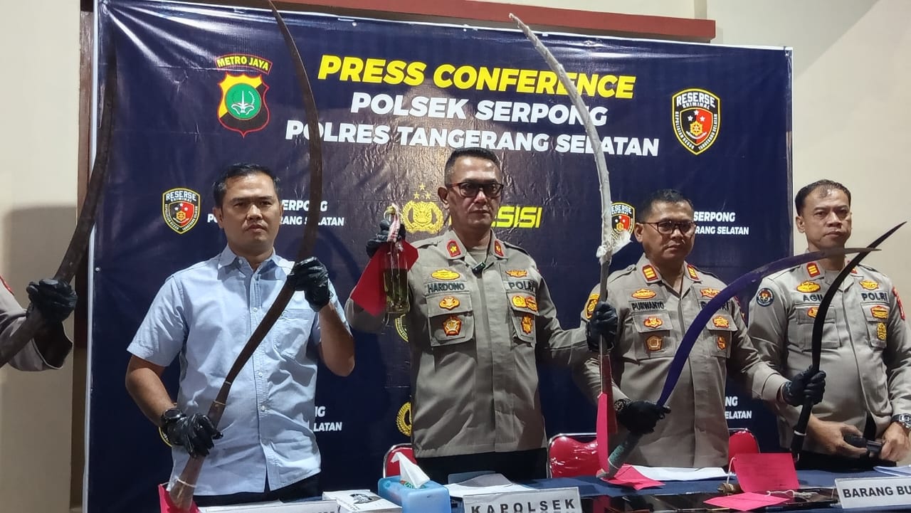Kapolsek Serpong Kompol Suhardono, S.H., M.H., didampingi Wakapolsek, Kanit Reskrim, dan Kasi Humas Polres Tangsel, mengungkapkan bahwa pengungkapan ini berawal dari laporan warga kepada Bhabinkamtibmas Kelurahan Cilenggang tentang adanya gerombolan remaja yang berkumpul di sekitar Kramat Tajuk, RT 006 RW 002.