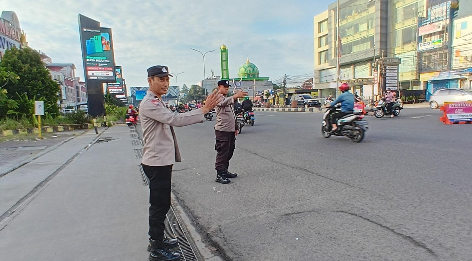 Dalam pelaksanaannya, petugas secara aktif mengatur arus kendaraan, membantu penyeberangan pejalan kaki, serta memberikan imbauan kepada pengendara agar tetap tertib berlalu lintas dan mengutamakan keselamatan. Kehadiran petugas di lapangan terbukti mampu memperlancar arus kendaraan sehingga aktivitas masyarakat dapat berjalan dengan aman dan nyaman.