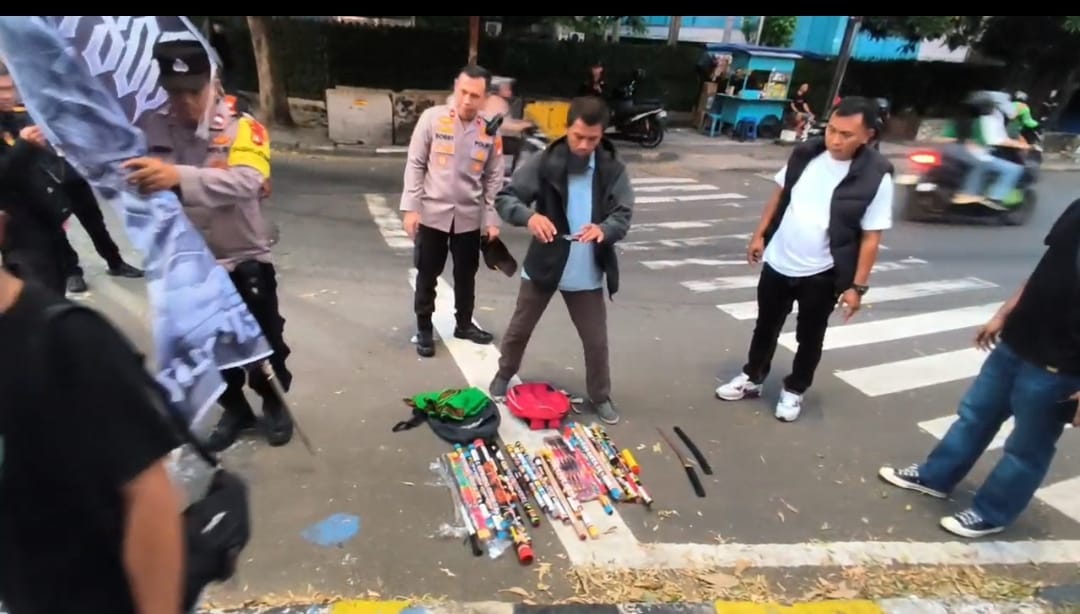 Rakyatmerdekanews.co.id, Jakarta Barat, Polsek Metro Tamansari Jakarta barat mengamankan 30 buah kembang api, 15 batang bambu atau pipa panjang, 15 bendera kelompok, hingga satu buah senjata tajam jenis samurai.