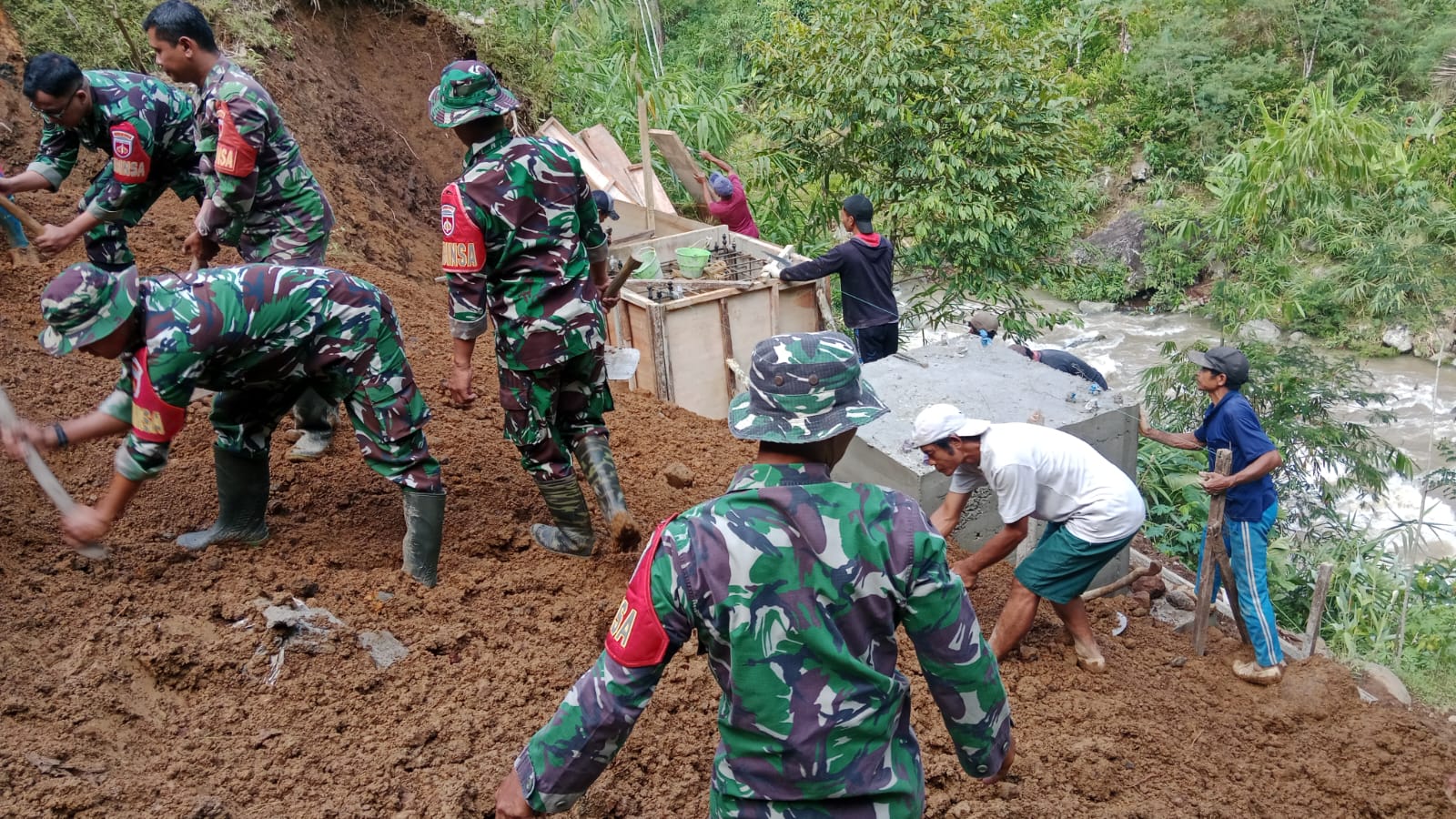 Prajurit Kodim 0704/Banjarnegara Satukan Dua Dusun Lewat Jembatan di Sungai Brakah