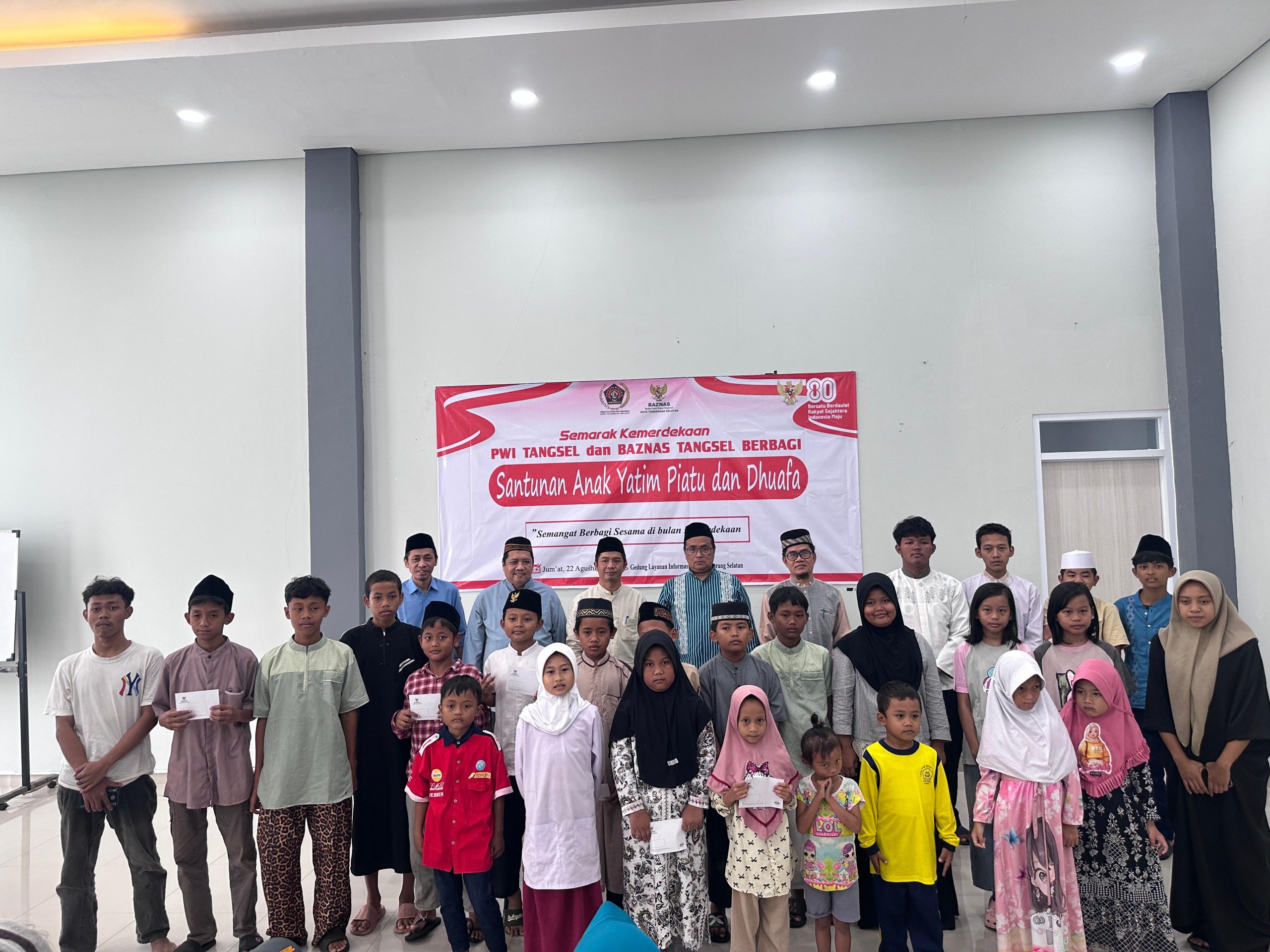 Rakyatmerdekanews.co.id, Tangerang Selatan – Dalam rangka menyemarakkan peringatan Hari Ulang Tahun (HUT) ke-80 Republik Indonesia, Persatuan Wartawan Indonesia (PWI) Kota Tangerang Selatan (Tangsel) bersama Badan Amil Zakat Nasional (Baznas) Tangsel menggelar kegiatan santunan bagi anak yatim, piatu, dan dhuafa dengan mengusung tema “Semangat Berbagi Sesama di Bulan Kemerdekaan”.
