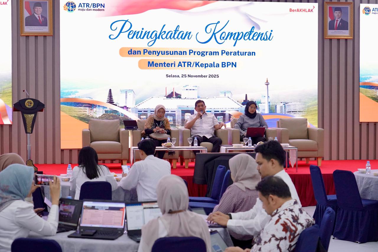 Rakyatmerdekanews.co.id, Jakarta – Kementerian Agraria dan Tata Ruang/Badan Pertanahan Nasional (ATR/BPN) menyelenggarakan Focus Group Discussion (FGD) Peningkatan Kompetensi Sumber Daya Manusia (SDM) di Bidang Pembentukan Peraturan Perundang-undangan dan Pembahasan Usulan Rancangan Peraturan Menteri Tahun 2026, Selasa (25/11/2025). Forum yang berlangsung di Aula Prona Kementerian ATR/BPN, Jakarta ini, dimaksudkan untuk memperkuat kompetensi SDM dalam merancang regulasi pertanahan dan tata ruang yang lebih responsif terhadap kebutuhan masyarakat, khususnya rakyat kecil.