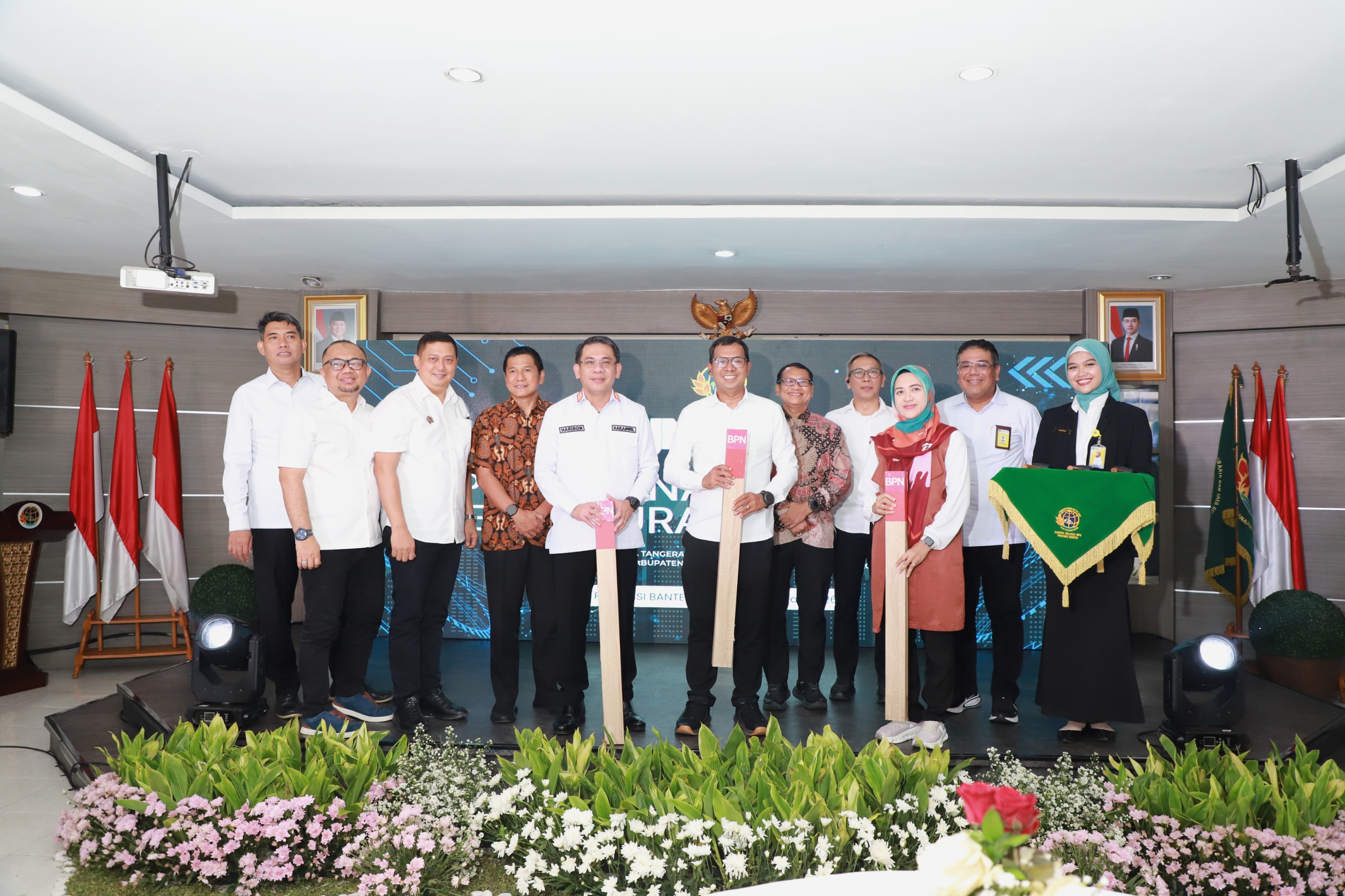 Rakyatmerdekanews.co.id, Kota Tangerang – Kepala Kantor Wilayah Badan Pertanahan Nasional (BPN) Provinsi Banten, Harison Mocodompis bersama Direktur Jenderal Survei dan Pemetaan Pertanahan dan Ruang, Virgo Eresta Jaya, serta Kepala Bidang Survei dan Pengukuran, Septein Paramia Swantika, resmi melaunching Layanan Pengukuran Terjadwal pada empat Kantor Pertanahan, yakni Kota Tangerang, Kabupaten Tangerang, Kota Tangerang Selatan, dan Kota Cilegon yang berlangsung di Aula Kantor Pertanahan Kota Tangerang, Rabu (11/2/2026).
