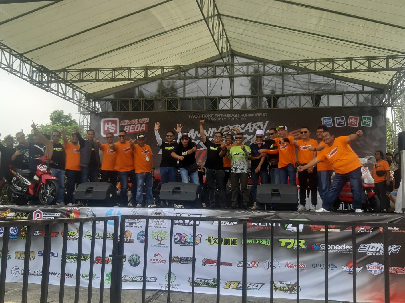 Secara seremoni, Anniversary Two Stroke Enthusiast Purworejo ditandai dengan pemotongan tumpeng oleh Ketua Two Stroke Enthusiast Purworejo Yudi Boim dan diberikan kepada Kapolres Purworejo AKBP Andry Agustiano.