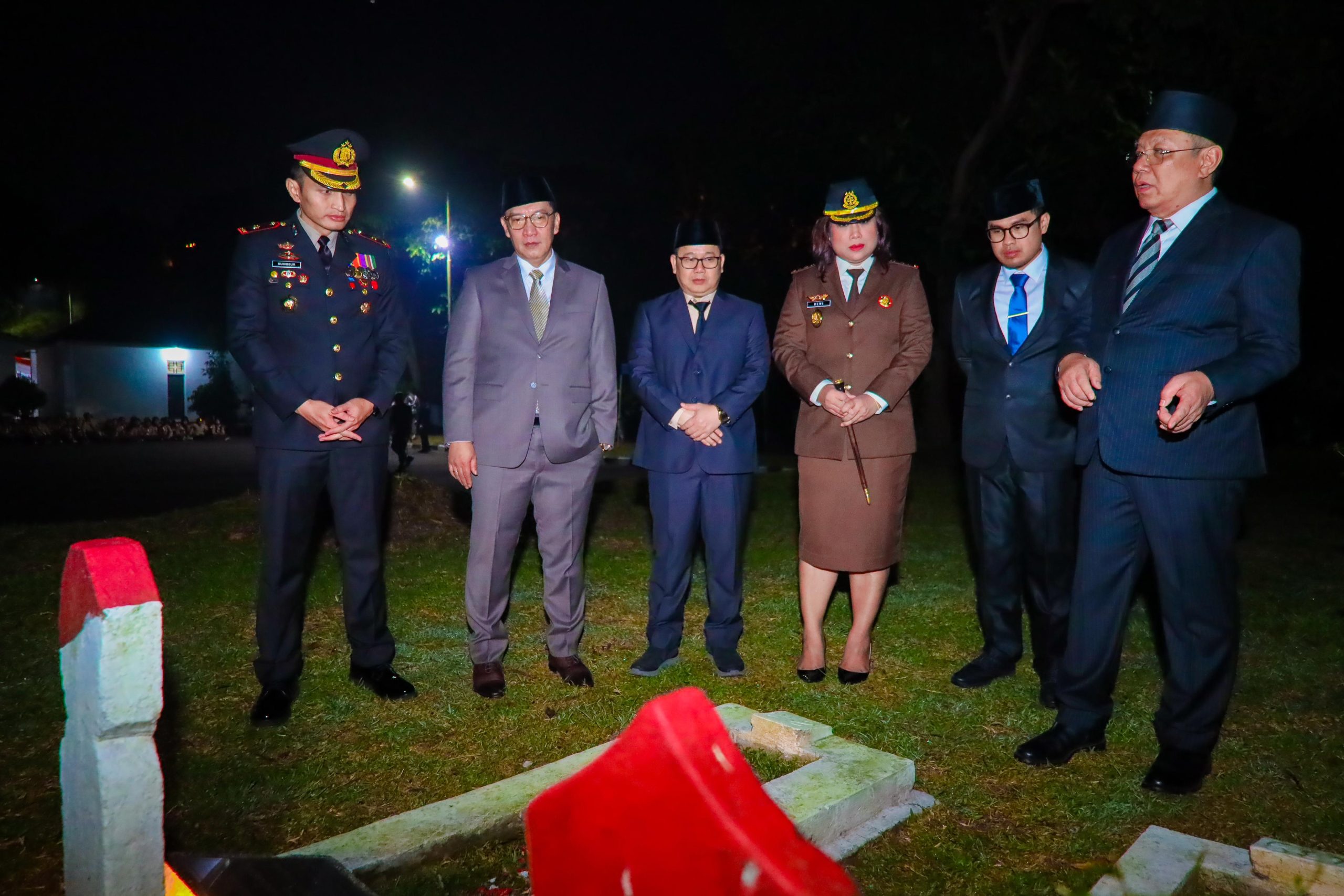 Dengan penerangan obor dan suasana yang sunyi, seluruh peserta upacara larut dalam doa dan refleksi mengenang jasa para pahlawan.