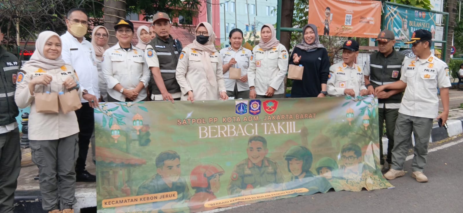 Satpol PP Kecamatan Kebon Jeruk Jakarta Barat Ramadan Berbagi, Bagikan Takjil Berbuka Puasa
