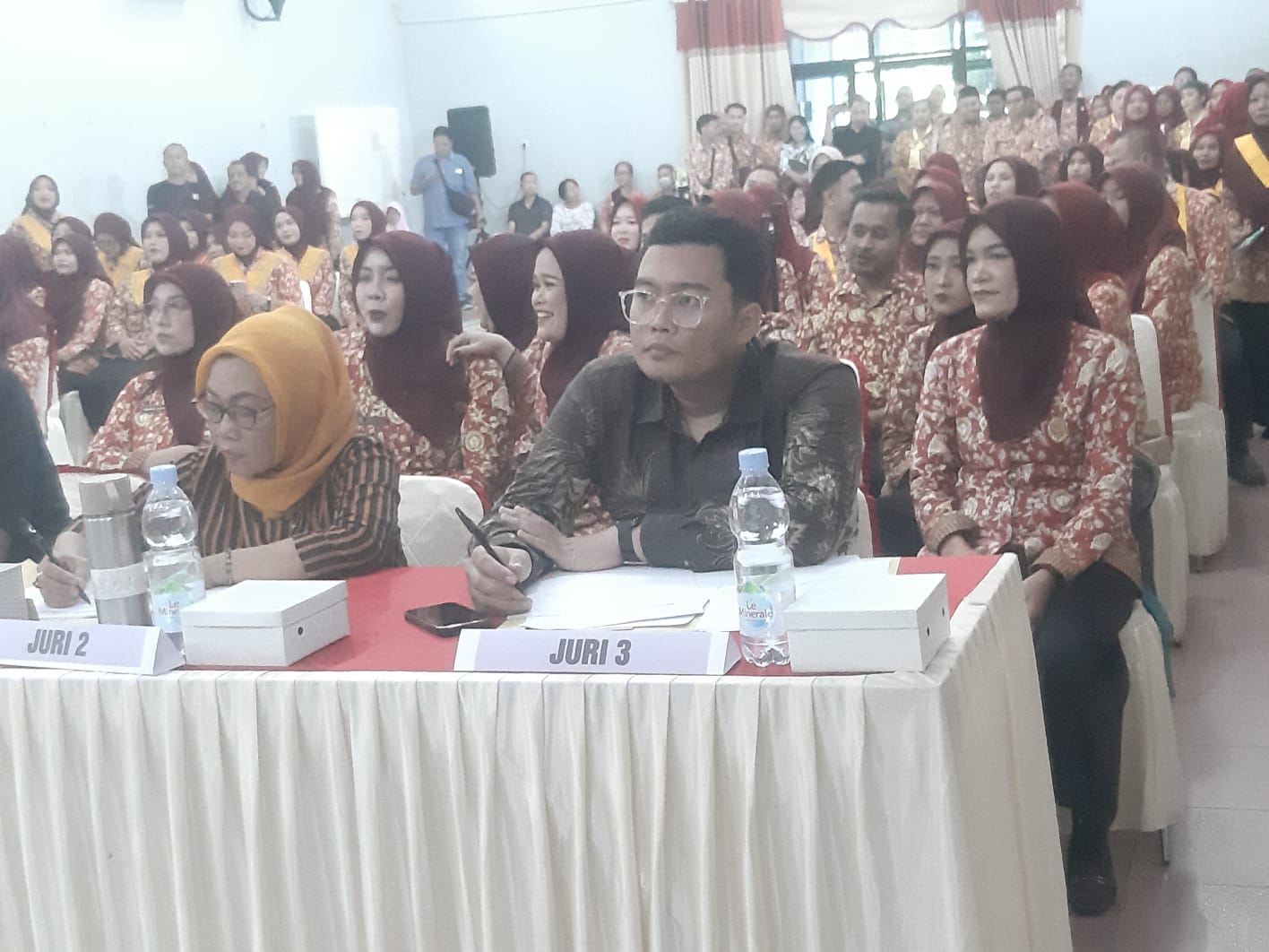 Untuk menjaga objektivitas, panitia menghadirkan tiga juri independen dari luar instansi yang berprofesi sebagai guru kesenian di berbagai sekolah untuk menilai lomba paduan suara.