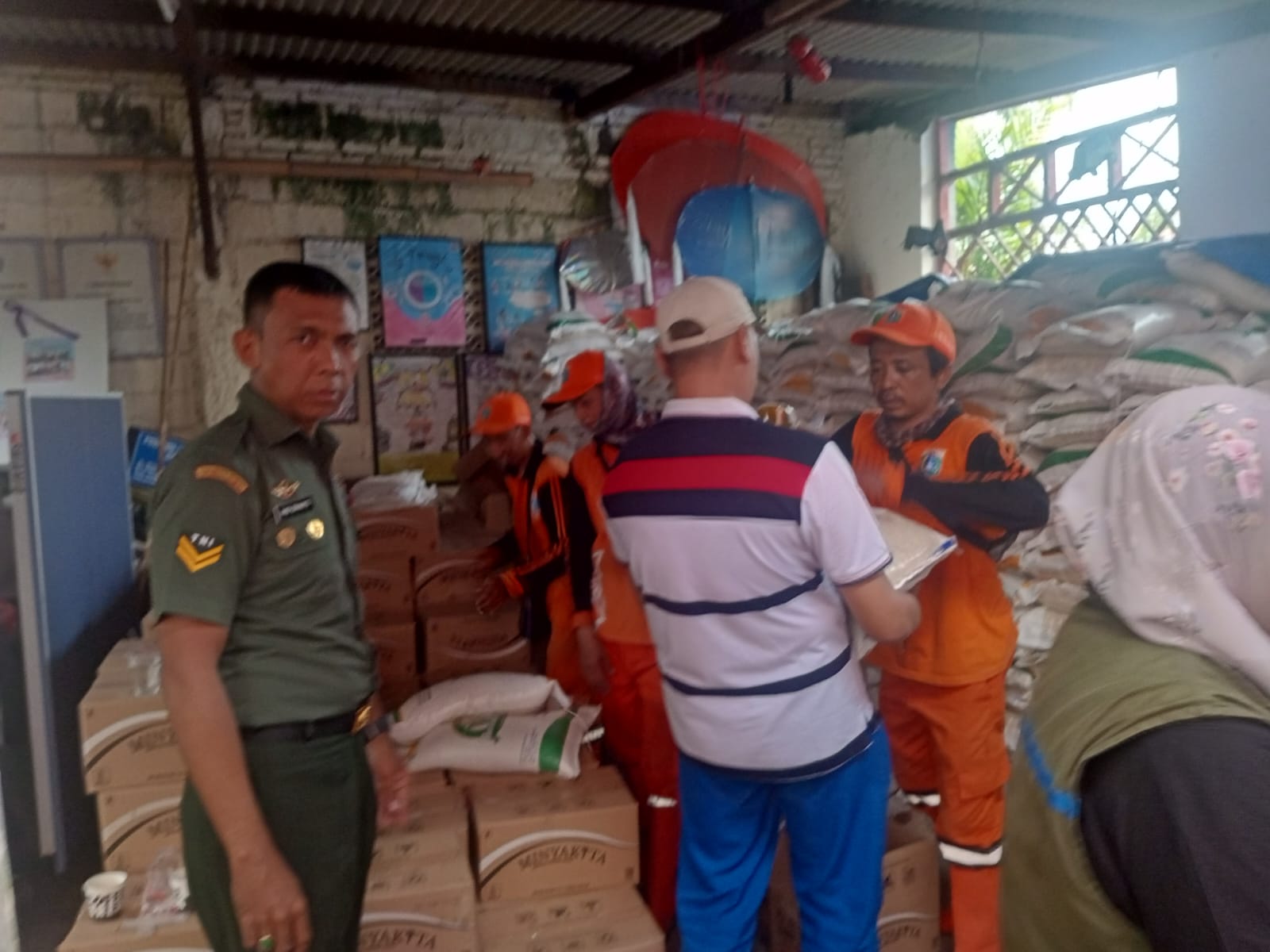 Babinsa Kelurahan Sukabumi Utara melaksanakan pengamanan dan monitoring kegiatan pendistribusian bantuan pangan berupa beras dan minyak goreng untuk mengantisipasi gangguan kamtibmas diwilayah.
