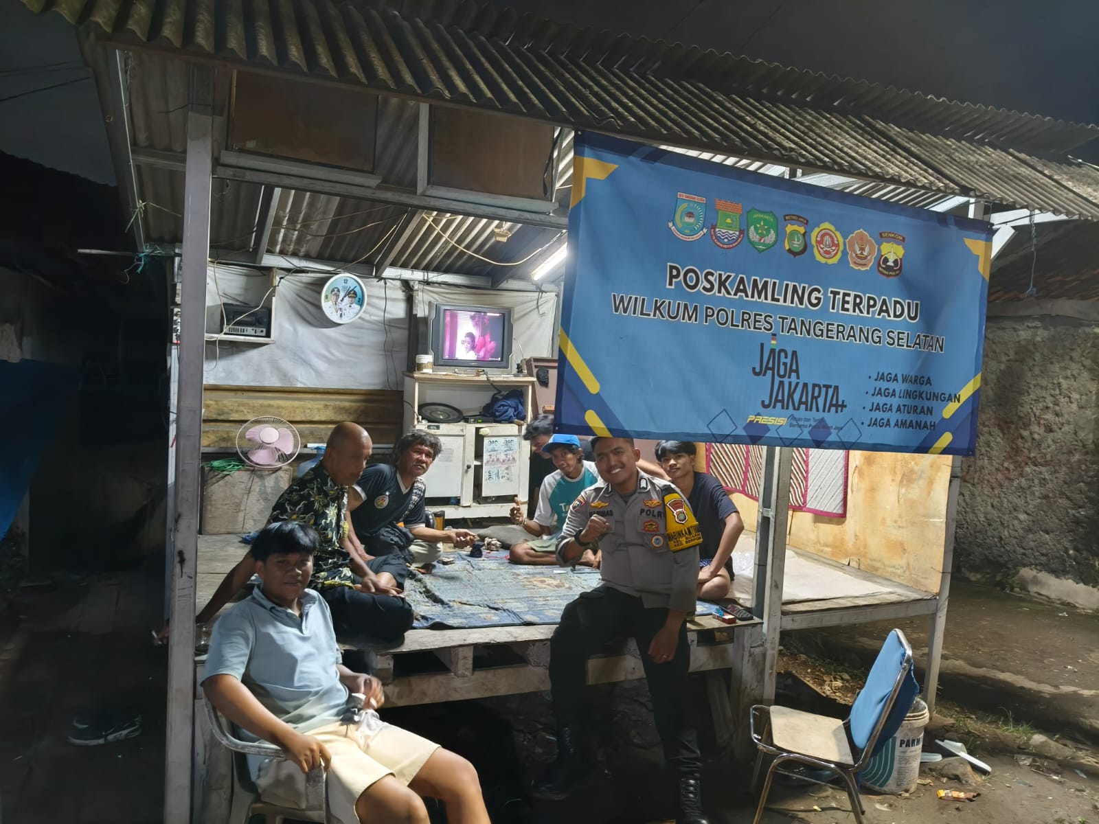 Bhabinkamtibmas Kelurahan Buaran Bripka Harimas Wijonarko melaksanakan kegiatan pengecekan Poskamling Terpadu yang berlokasi di Gang Melawai RT 003/007, Kelurahan Buaran, Kecamatan Serpong, Kota Tangerang Selatan. (13/01)