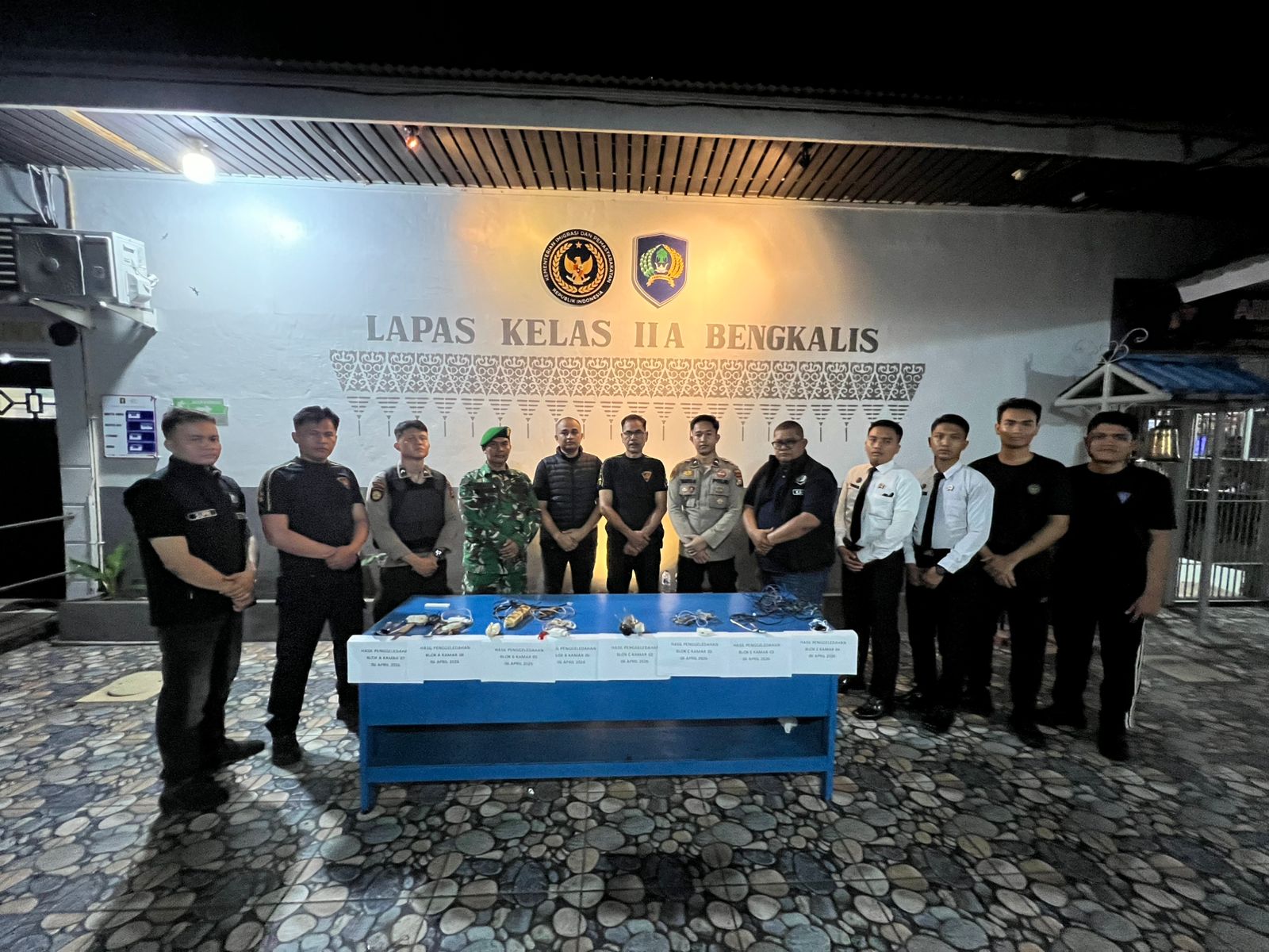 Guna memastikan tidak ada celah bagi barang terlarang, Lapas Bengkalis bergerak cepat menggandeng personel dari Polres Bengkalis dan Kodim 0303 Bengkalis untuk menyisir setiap sudut kamar hunian.