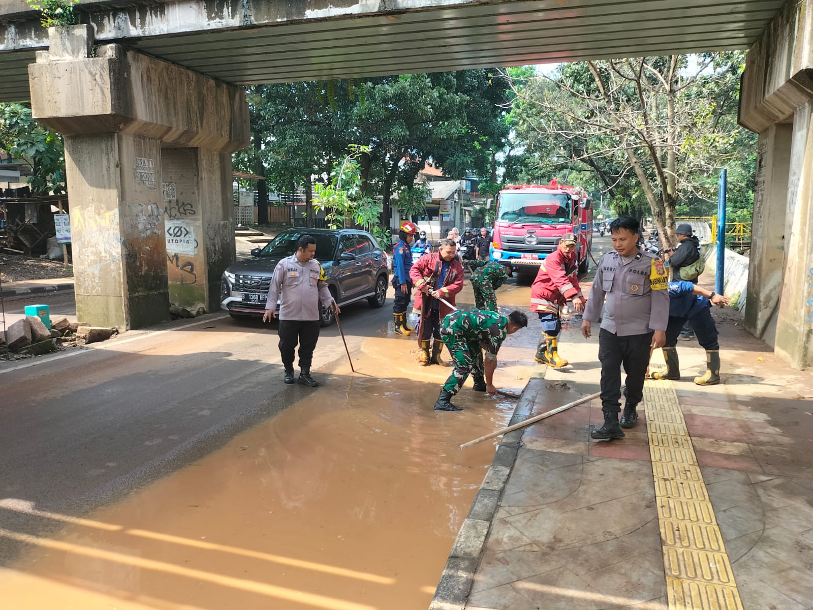 Sinergi TNI-Polri dan Warga Bersihkan Lumpur di Kolong Tol BSD, Kapolsek Serpong: “Kebersamaan Wujud Nyata Pengabdian”