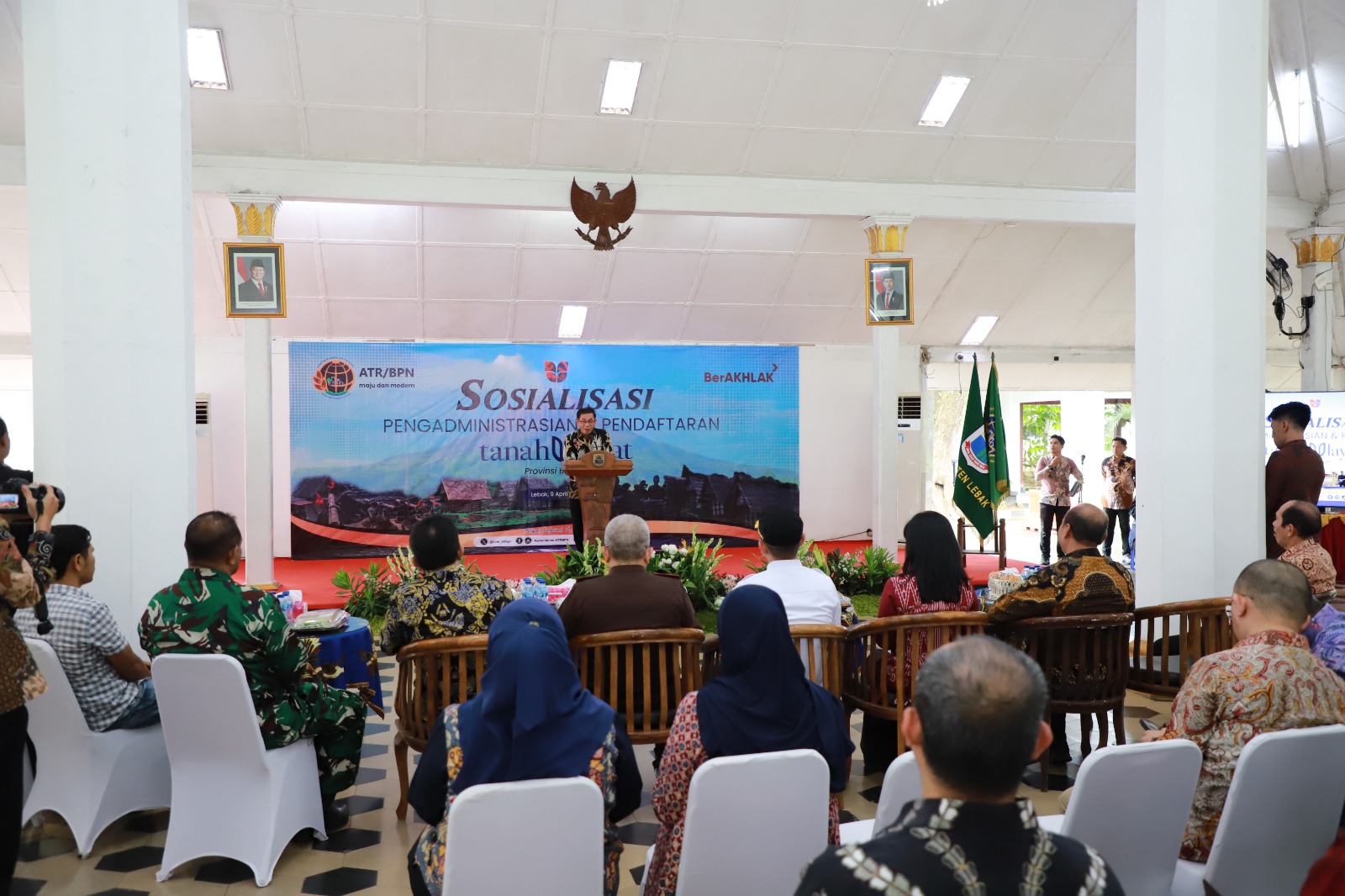 Rakyatmerdekanews.co.id, Lebak – Kepala Kantor Wilayah Badan Pertanahan Nasional (BPN) Provinsi Banten, Harison Mocodompis, bersama Staf Khusus Kementerian Agraria dan Tata Ruang/Badan Pertanahan Nasional (ATR/BPN) Bidang Reforma Agraria, Rezka Oktoberia, serta Direktur Pengaturan Tanah Pemerintah, Tanah Ulayat, dan Tanah Komunal, Suwito, didampingi Pejabat Administrator Kanwil BPN Banten dan Kepala Kantor Pertanahan Kabupaten Lebak, Akhda Jauhari beserta jajaran, melaksanakan Sosialisasi Pengadministrasian dan Pendaftaran Tanah Ulayat di Kantor Bupati Lebak, Kamis (9/4/2026).