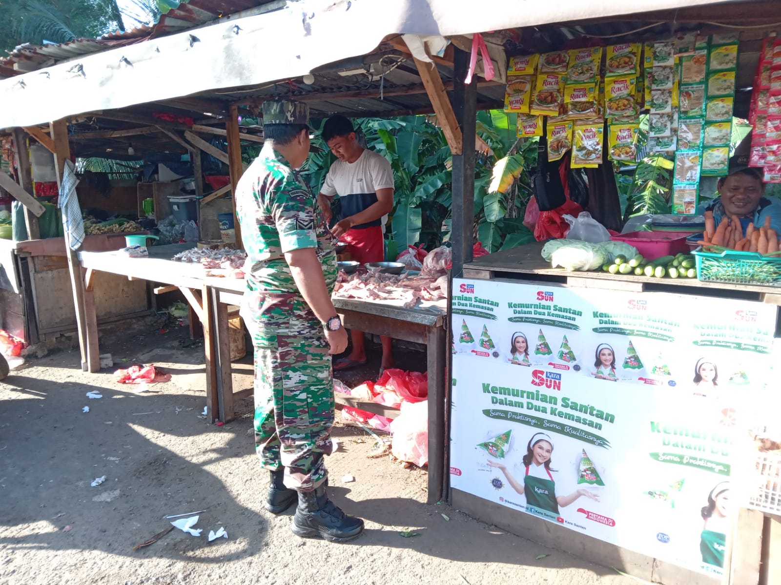Tak Perna Lelah TNI Koramil 05 KJ Bergerak Berikan Pelayanan Untuk Masyarakat Cek Keadaan Pasar Tradisional