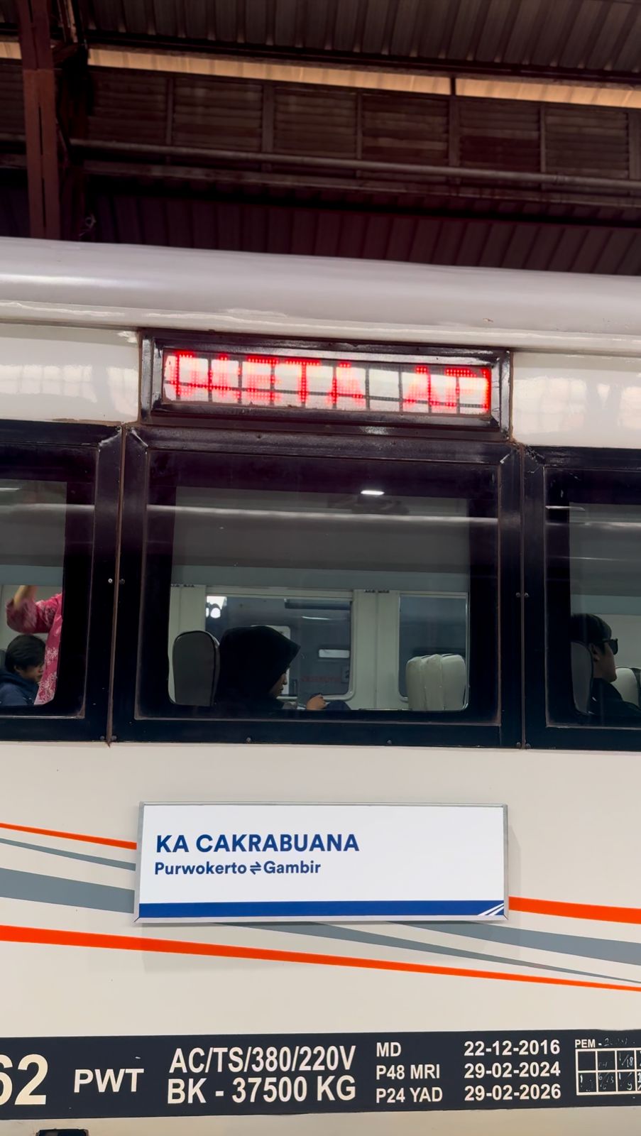 a. KA 121 Cakrabuana: Purwokerto – Gambir, berangkat pukul 05.30 WIB