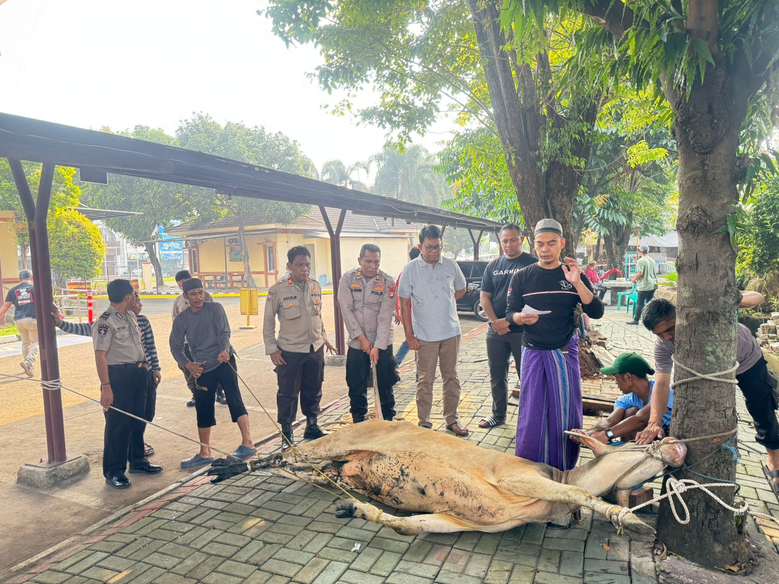 Rakyatmerdekanews.co.id, Tangerang selatan – suasana penuh keberkahan menyelimuti Mako Polsek Kelapa Dua dalam rangka perayaan Hari Raya Idul Adha 1446 H. Dipimpin langsung oleh Kapolsek Kelapa Dua, KOMPOL Gus Prihatin Zen, S.H., kegiatan pemotongan hewan kurban berlangsung tertib dan khidmat. Sebanyak satu ekor sapi dan sembilan ekor kambing dikurbankan sebagai bentuk pengabdian dan kepedulian kepada sesama. Kegiatan ini mencerminkan semangat berbagi yang menjadi nilai utama dari perayaan Idul Adha. (07/06)