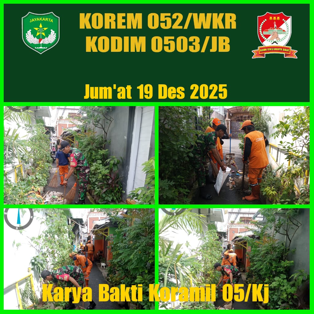 Rakyatmerdekanews.co.id, Jakarta – Cegah banjir dan genangan air dilingkungan di musim penghujan memasuki bulan penghujan Babinsa Koramil 05 KJ Lakukan, terus bergerak bersama warga jaga Kota Jakarta agar tetap Bersih dan asri., Jumat (19/12/2025).