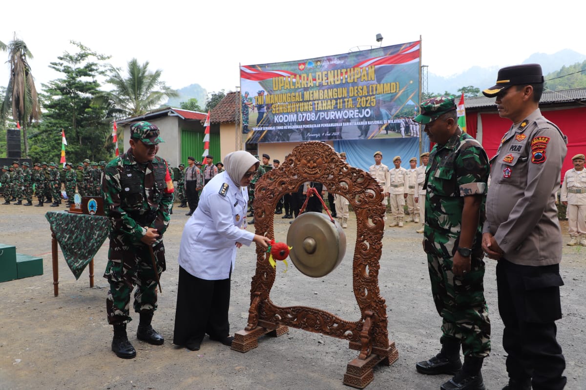 Hadir pada kegiatan ini, Bupati Purworejo Hj Yuli Hastuti SH didampingi jajaran Forkopimda dan pejabat terkait. Bupati berkesempatan menandatangani berita acara serah terima TMMD dan prasasti pembangunan fisik serta menutup secara simbolis Program TMMD Sengkuyung Tahap II TA 2025.