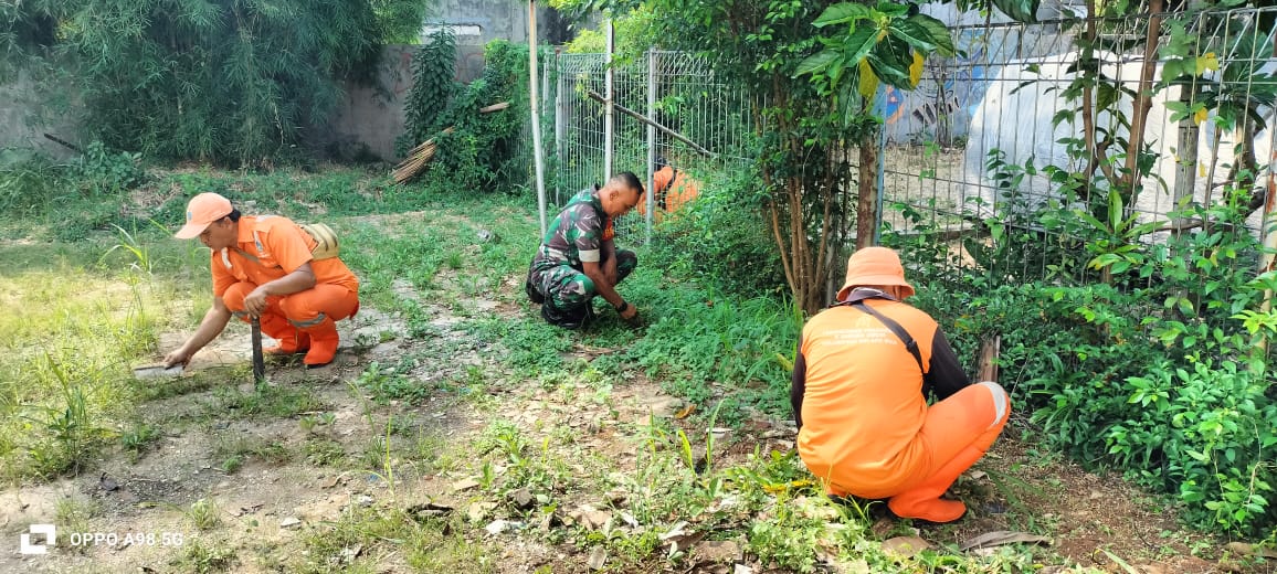 Karya bakti dilingkungan masyarakat yang dilakukan melibatkan 5 orang terdiri dari Babinsa Kelapa Dua dan pekerja PPSU Kelurahan membersihkann lapangan Fasum