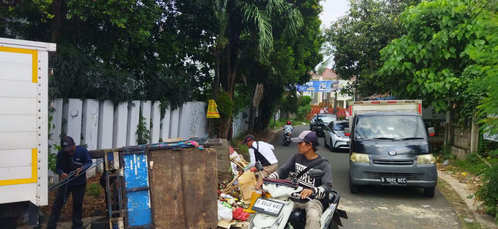 Unit Binmas Polsek Ciputat Timur Bantu Evakuasi Kecelakaan Roda Tiga Pengangkut Sampah di Tarumanegara