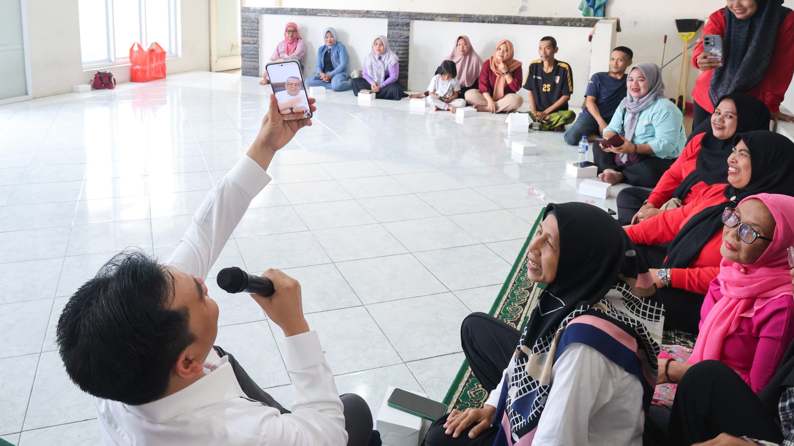 Asep yang berada di tengah kerumunan warga, menghubungkan langsung ponselnya kepada Wali Kota agar masyarakat dapat berdialog tanpa sekat.