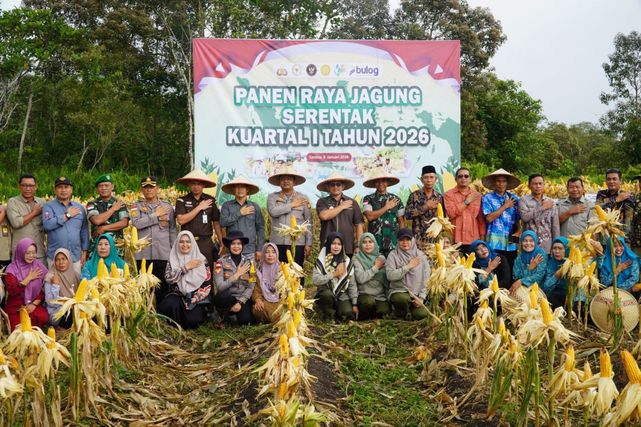 Rakyatmerdekanews.co.id, Sambas Kalbar – Wakil Bupati Sambas H.Heroaldi Djuhardi Alwi.ST.MT. menghadiri kegiatan Panen Jagung Kuartal I Tahun 2026, di Dusun Sebambang, Desa Sedoyan kecamatan Sambas bersama Kapolres Sambas AKBP.Wahyu jati Wibowo.S.I.K.SH.MH. dan Komandan Kodim 1208/Sambas Letkol Inf Dwiyanto Kusumo, M.A.P. hal ini merupakan komitmen Daerah Kabupaten Sambas dalam mendukung program Pusat mengenai Ketahanan Pangan sekala Nasional khususnya di wilayah Kabupaten Sambas, serta membuktikan wujud sinergi antara Pemda, TNI–Polri dalam mendukung program ketahanan pangan di wilayah Kabupaten Sambas kemarin Kamis (08/01/2026).