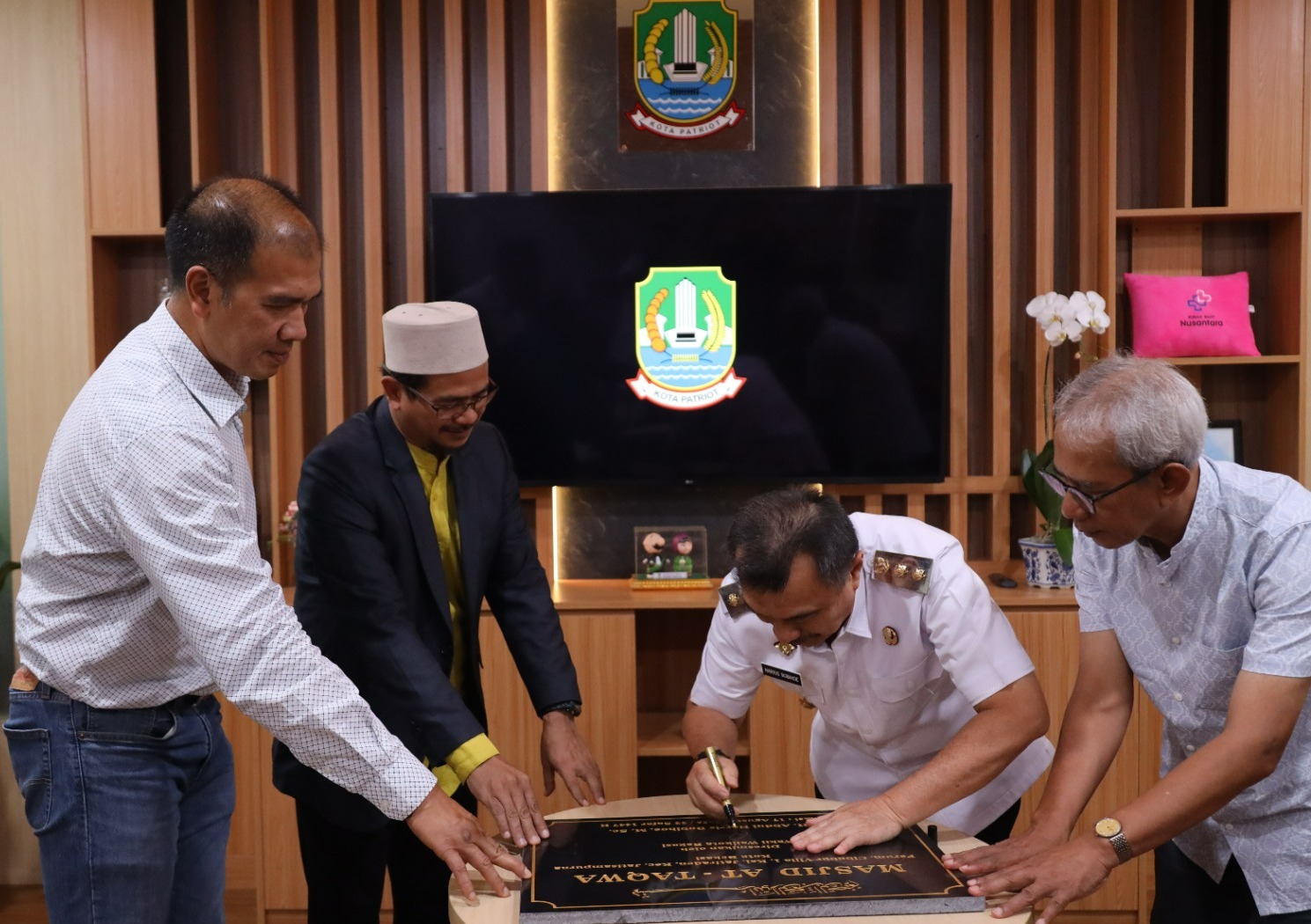 Rakyatmerdekanews.co.id, Kota Bekasi – Wakil Wali Kota Bekasi Abdul Harris Bobihoe tandatangani prasasti Masjid AT Taqwa Perum Cibubur, Jati raden, Jatisampurna.